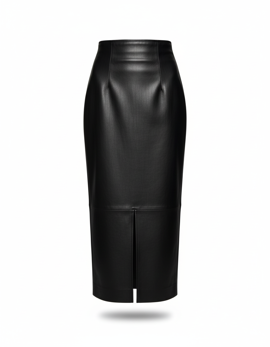 Jupe Crayon Cuir Longue avec Fente Frontale