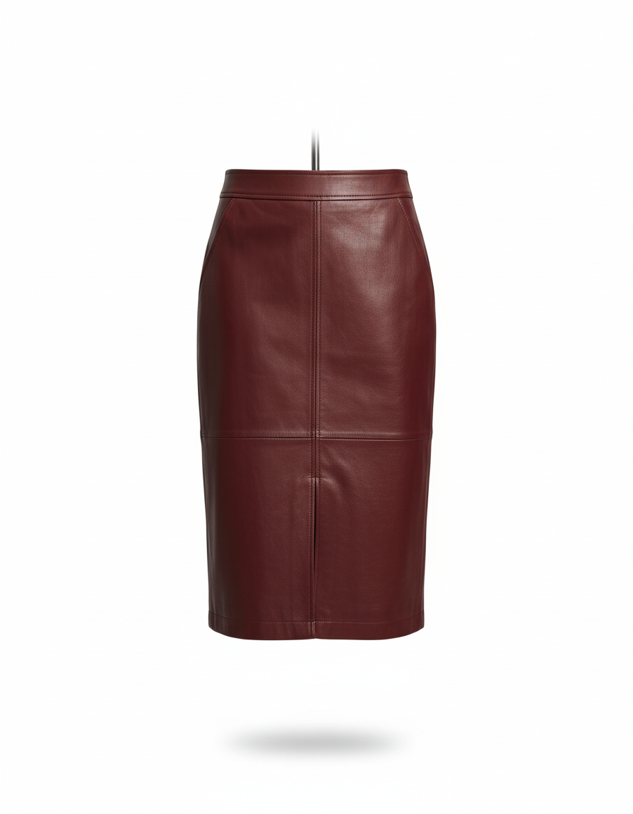 Jupe Crayon Cuir Bordeaux : L'Élégance Intemporelle Réinventée