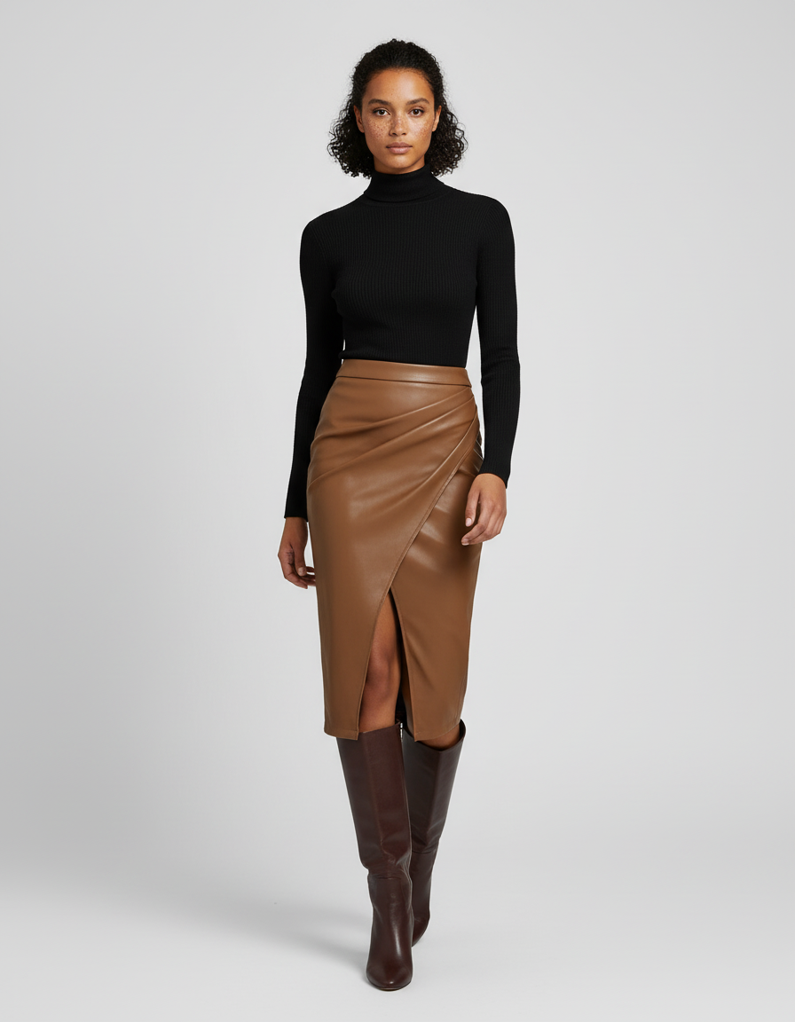 Jupe Crayon Simili Cuir Fendue : L'Audace Raffinée du Style Moderne