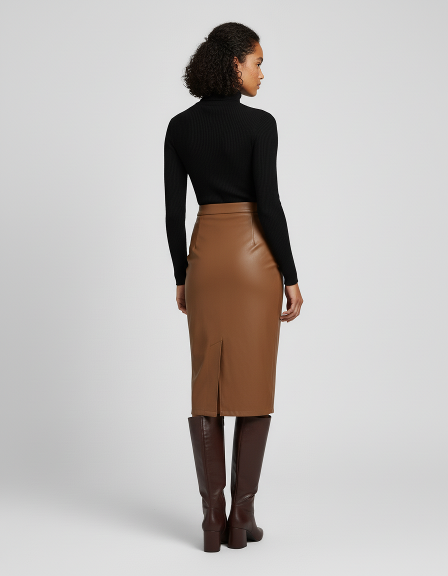 Jupe Crayon Simili Cuir Fendue : L'Alliance du Chic et du Confort