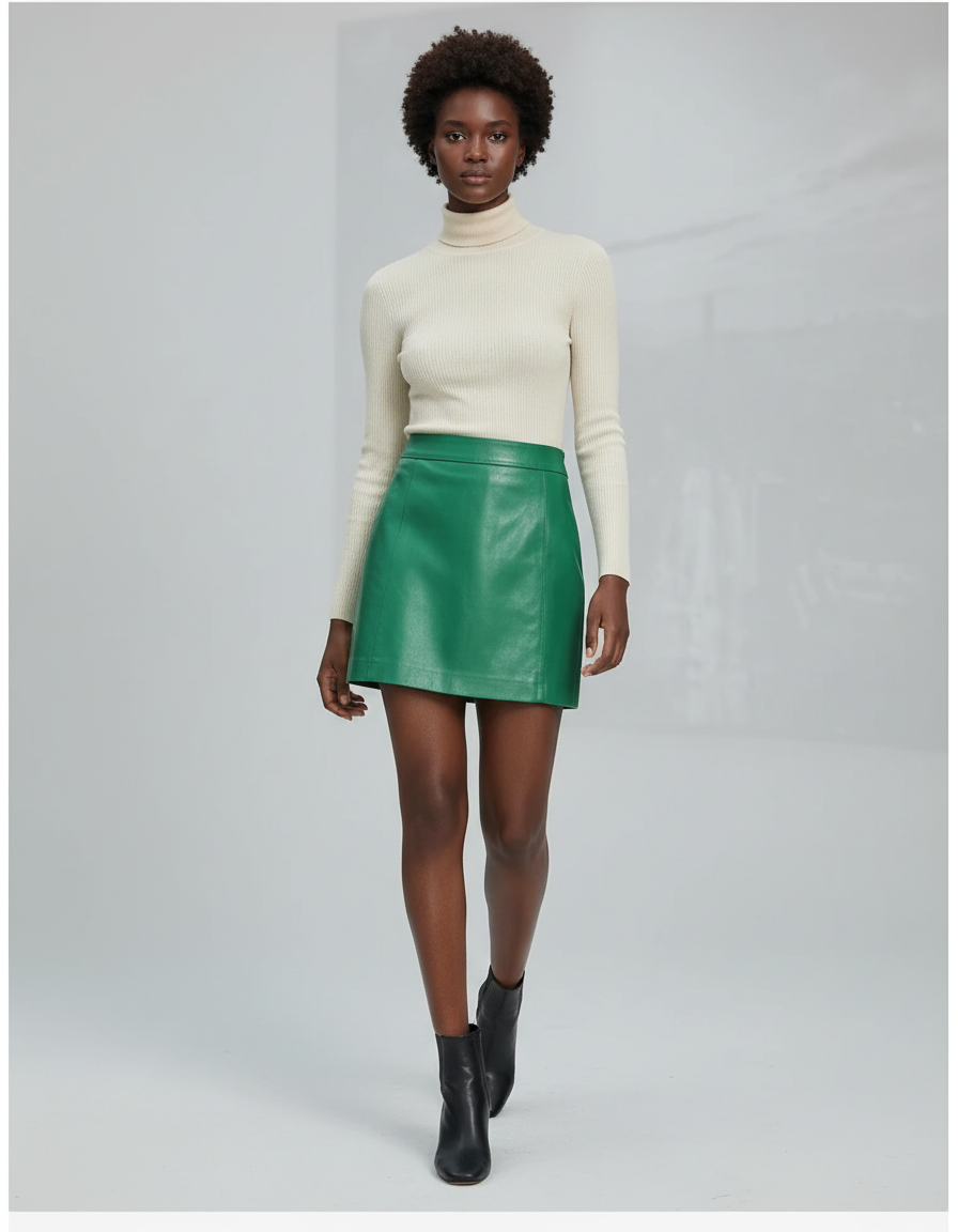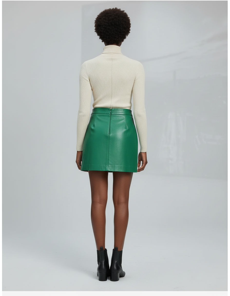 La Jupe Cuir Agneau : L'Audace du Vert Émeraude