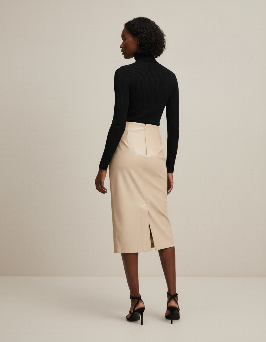 La Jupe Cuir Beige Fendue : L'Élégance Redéfinie