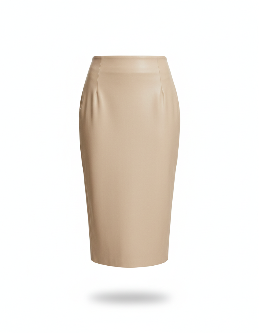 Conçue pour la femme moderne qui ne transige pas sur l'élégance et le bien-être, notre Jupe Crayon en Cuir Beige se distingue par son toucher soyeux et sa souplesse inégalée. Chaque mouvement est fluide et libre, grâce à la qualité exceptionnelle de son cuir et à sa coupe experte qui épouse la silhouette sans jamais contraindre. La fente subtile assure une aisance parfaite, tandis que le tombé impeccable de cette pièce premium garantit une allure sophistiquée et une confiance inébranlable, du matin au soir.