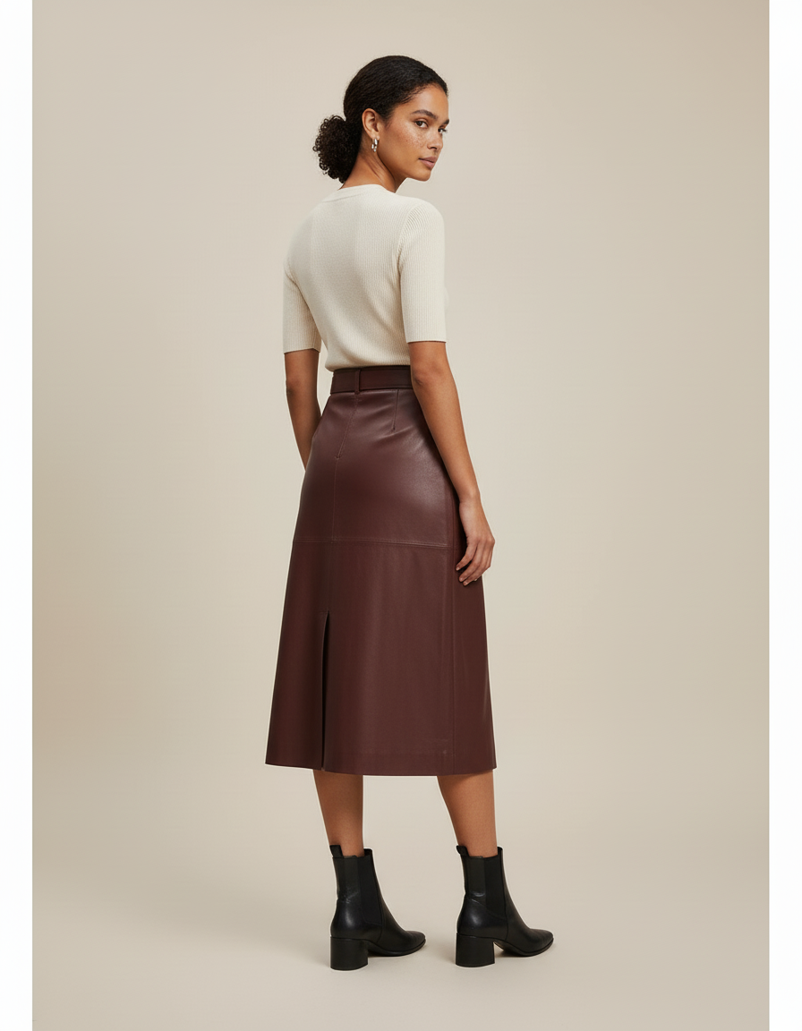 Jupe Cuir Bordeaux Midi Chic : L'Élégance Redéfinie pour la Femme Moderne