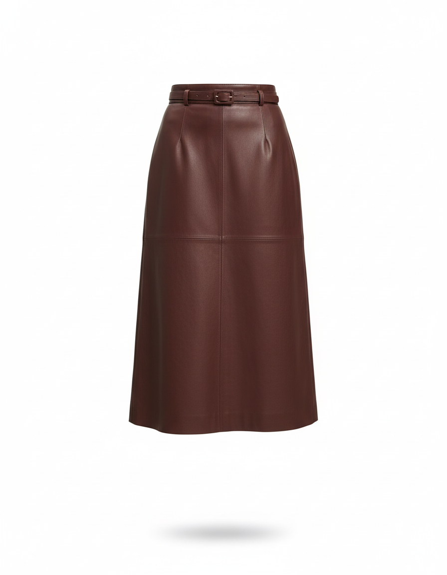 Élevez votre style avec notre jupe midi en cuir bordeaux, une pièce intemporelle pour une allure sophistiquée et moderne.