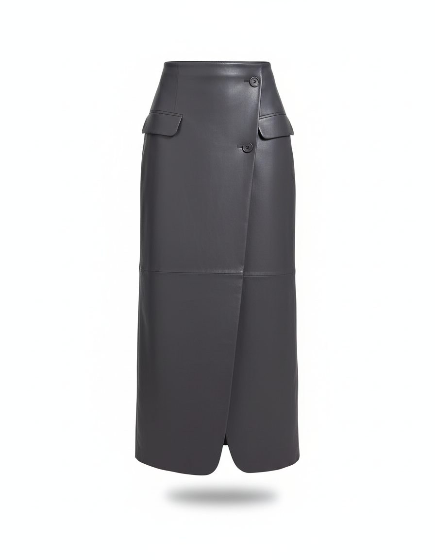 Découvrez l'élégance moderne avec notre jupe longue en cuir boutonnée, une pièce maîtresse pour toute garde-robe sophistiquée.