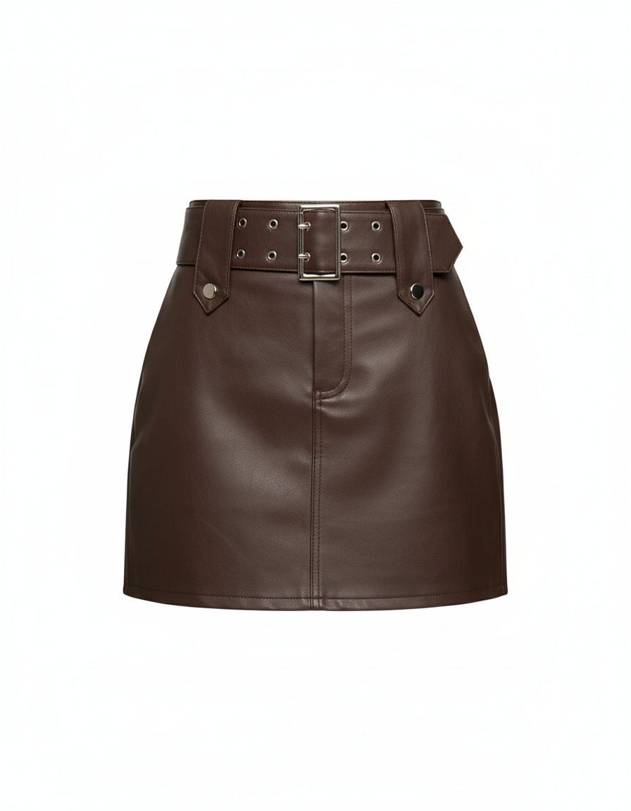 Adoptez un style audacieux et tendance avec notre jupe en cuir chocolat.