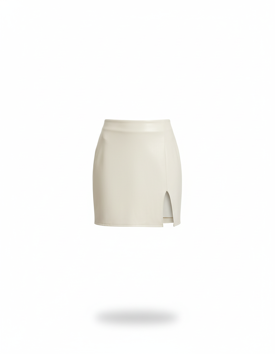 Jupe Fendue en Cuir Crème : L'Élégance Audacieuse Redéfinie