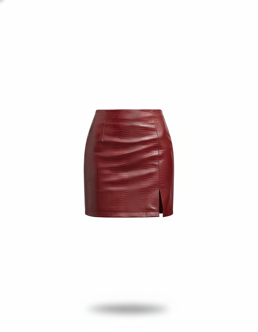 Jupe Cuir Croco : L'Éclat du Bordeaux, l'Audace du Style.