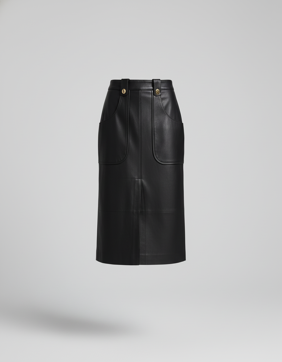 Jupe Cuir Fermeture Devant – Longueur Midi