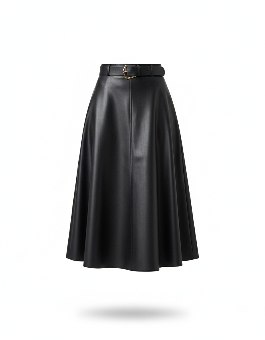 Adoptez un style raffiné et polyvalent avec cette jupe en similicuir moderne.