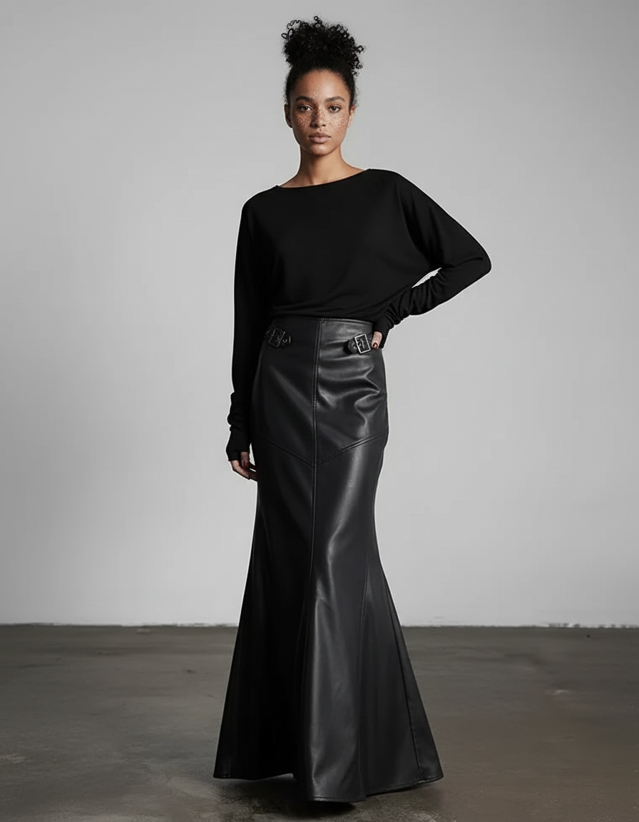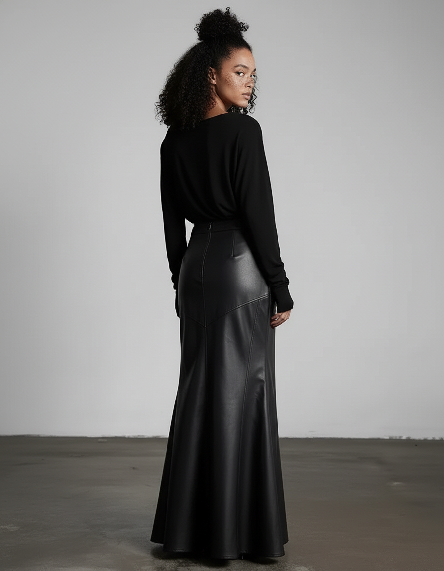 Jupe longue noire coupe sirène Jupe Cuir Luxe