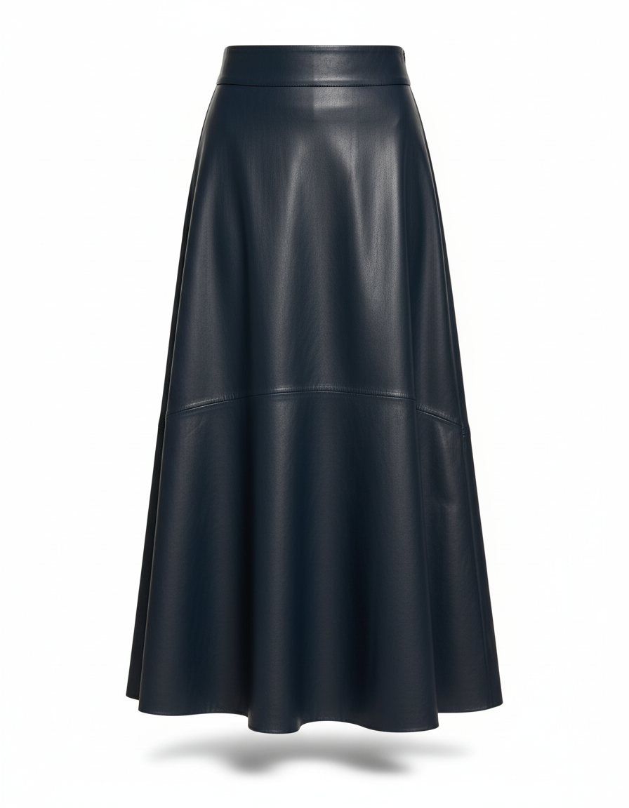 Jupe Évasée en Cuir Marine : L'Essence du Style Sophistiqué