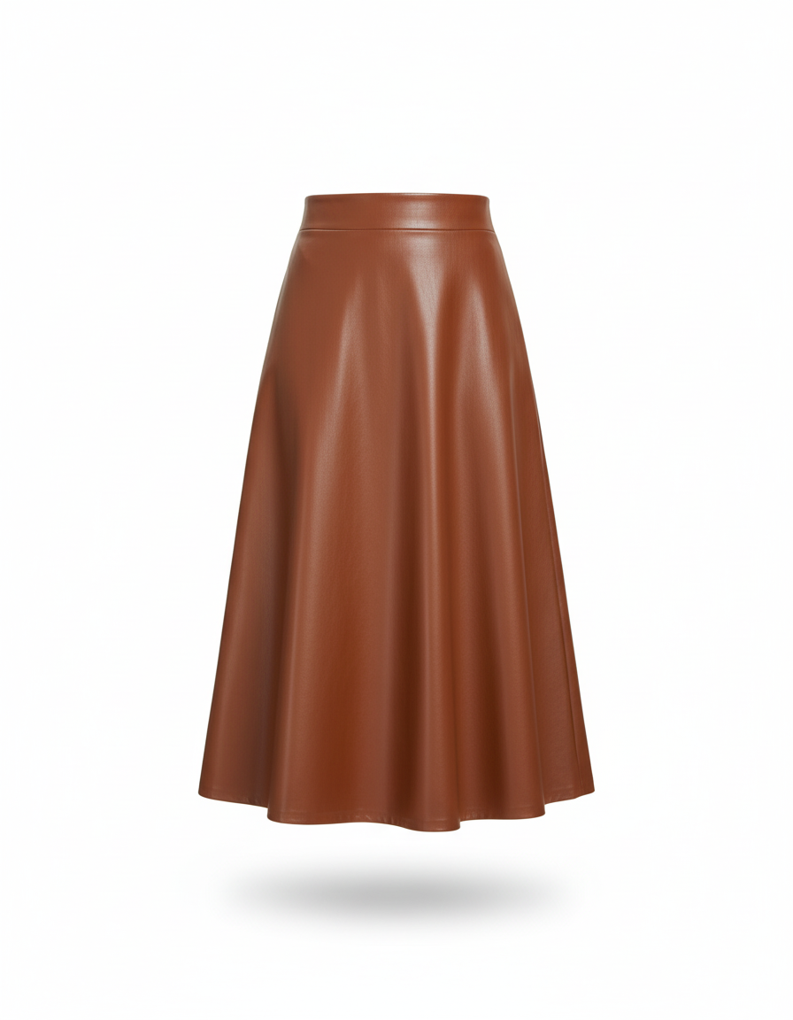 Élevez votre style avec cette jupe en cuir marron évasée, parfaite pour une allure chic et moderne.