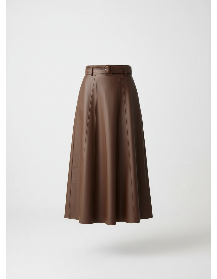 L'Élégance Intemporelle : Jupe Évasée en Cuir Marron