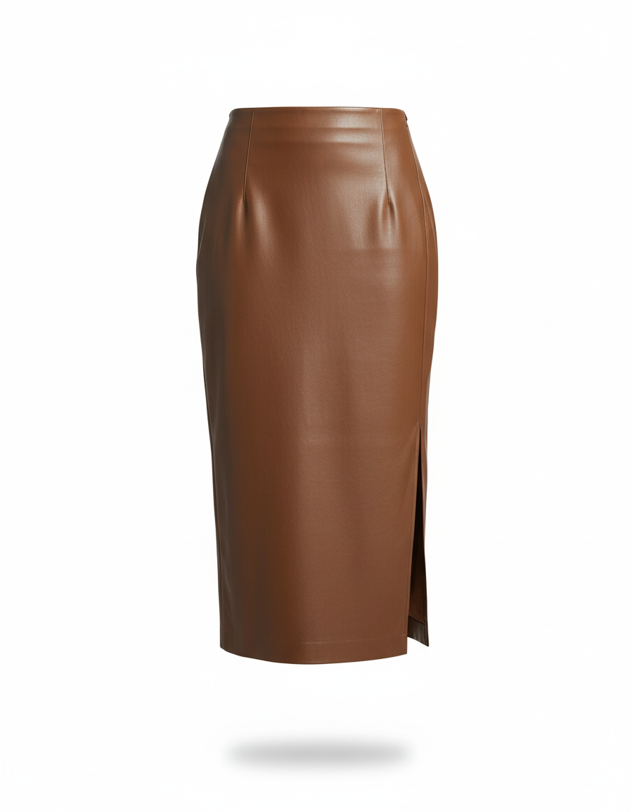 L'Élégance Affirmée : Jupe Crayon en Cuir Marron Fendue Chic