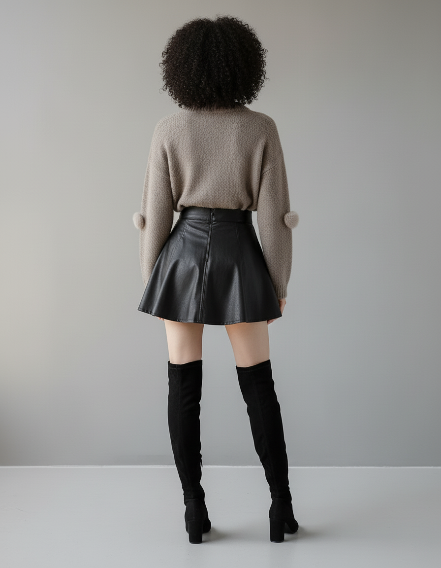 Jupe Patineuse en Simili Cuir Noir : L'Élégance Audacieuse Redéfinie