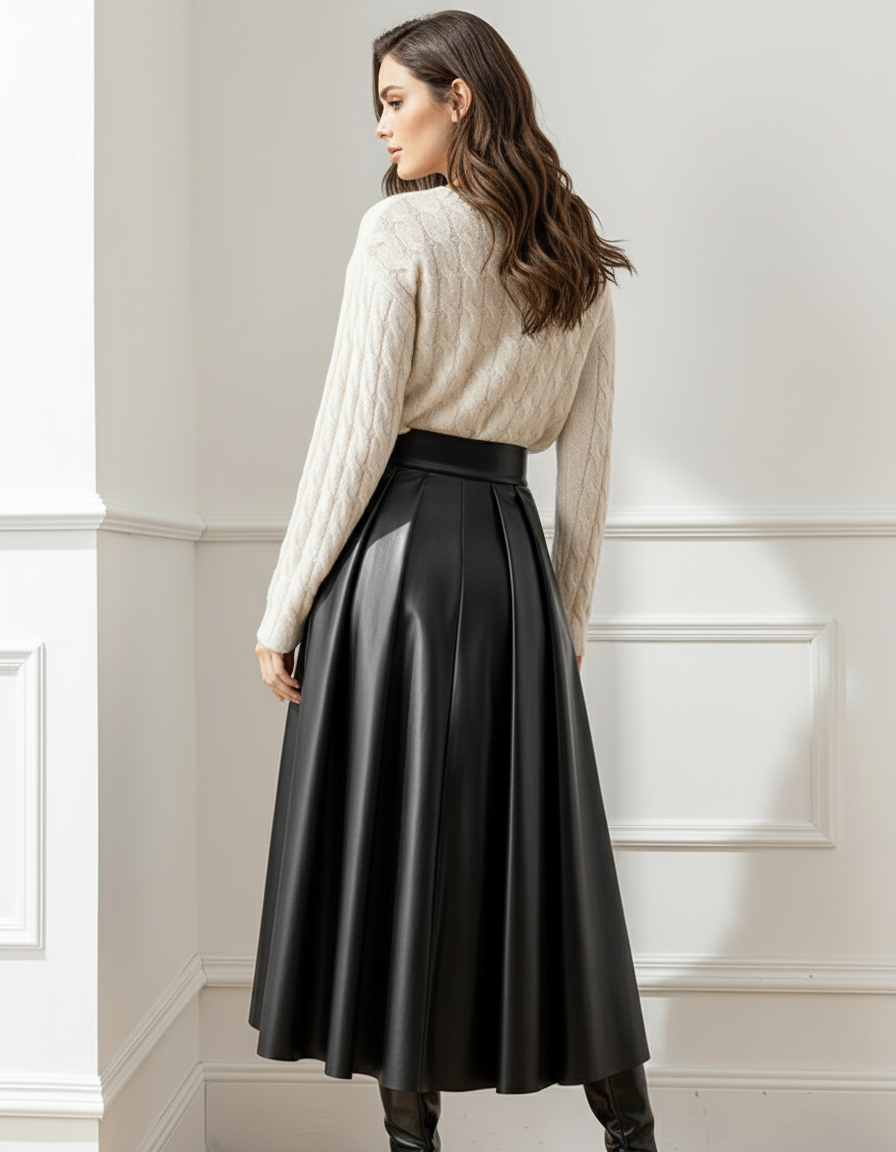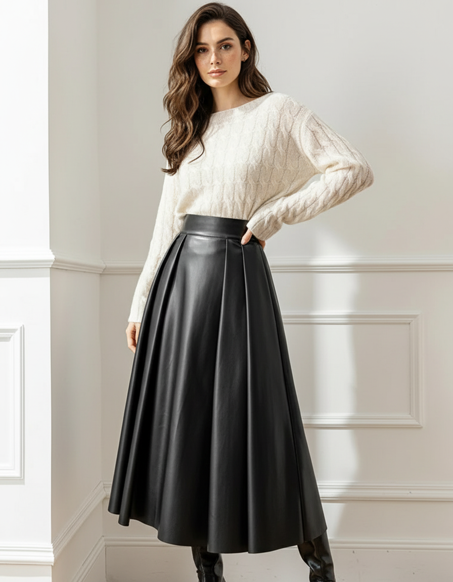 La Jupe Plissée en Cuir Noir : L'Élégance Intemporelle