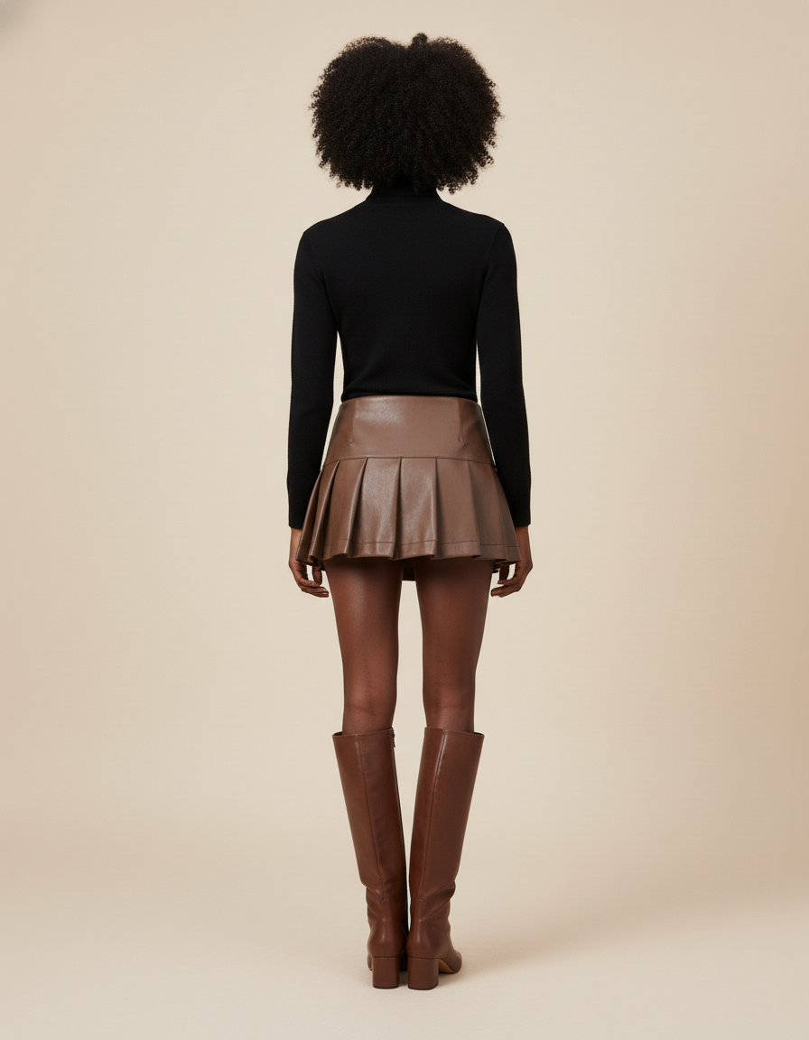 La Jupe Plissée en Cuir Marron Y2K : Audace et Confort Réunis