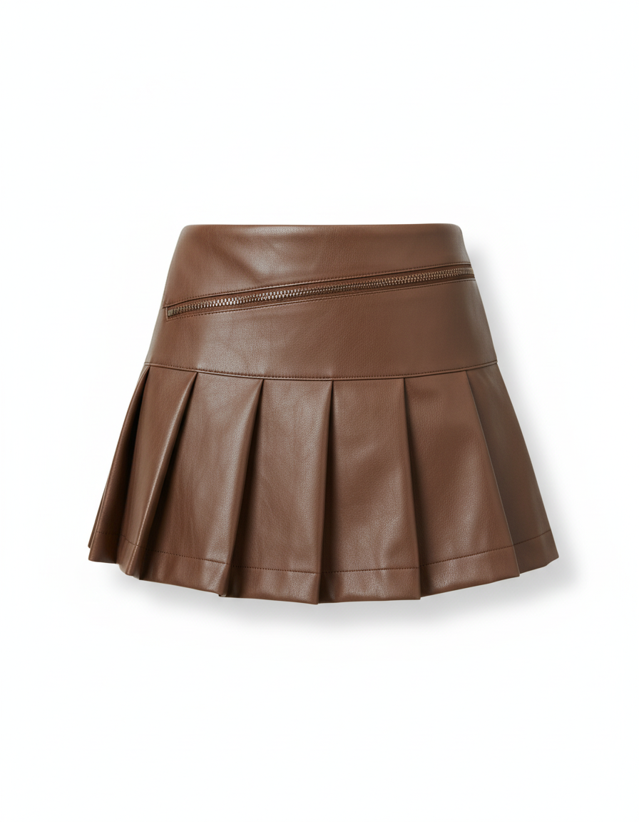 Pourquoi choisir la Jupe Cuir Plissée Marron Y2K