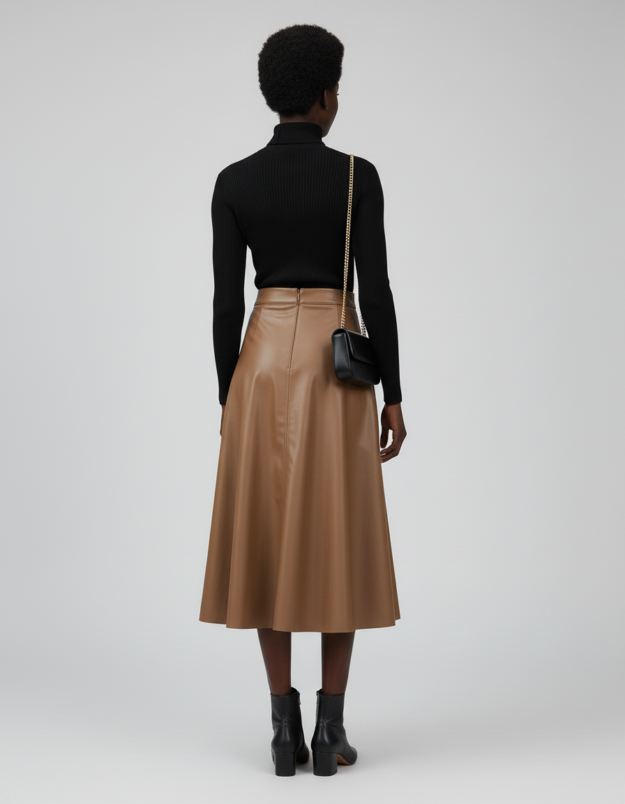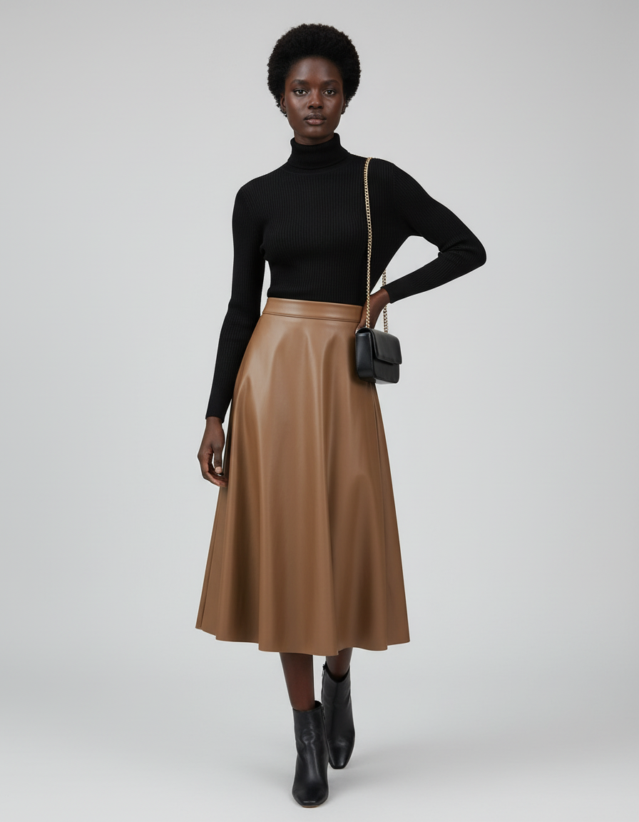 Jupe Évasée en Simili Cuir – L'Élégance Redéfinie
