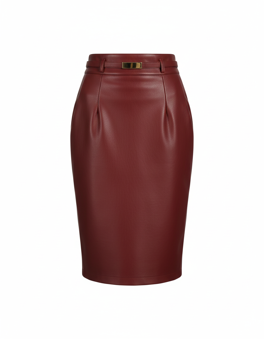Élégante et audacieuse, cette jupe crayon en cuir rouge est la pièce maîtresse pour un look sophistiqué.