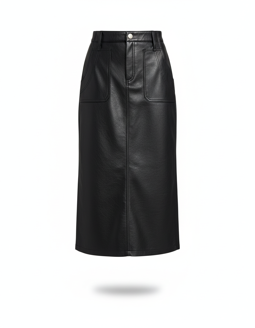Adoptez un look audacieux et sophistiqué avec notre jupe midi en similicuir.