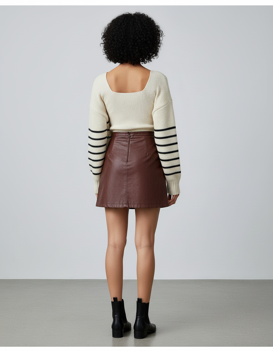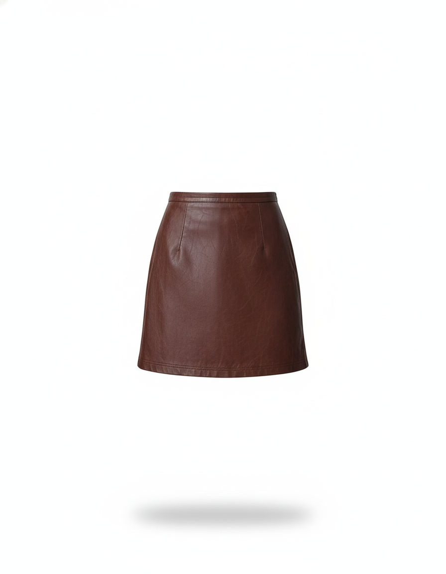 L'Élégance Audacieuse de la Jupe Trapèze en Simili Cuir Marron
