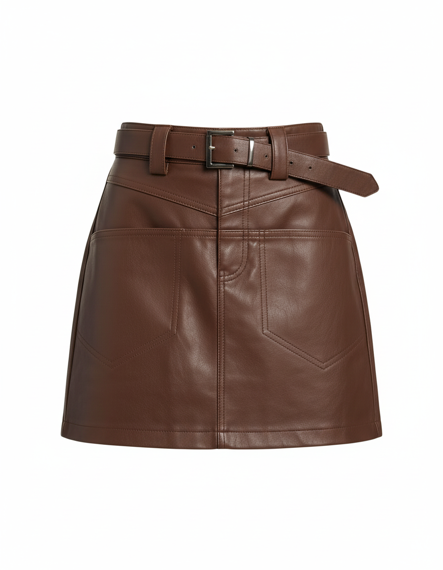 Adoptez un style intemporel avec notre jupe en cuir marron d'inspiration vintage.