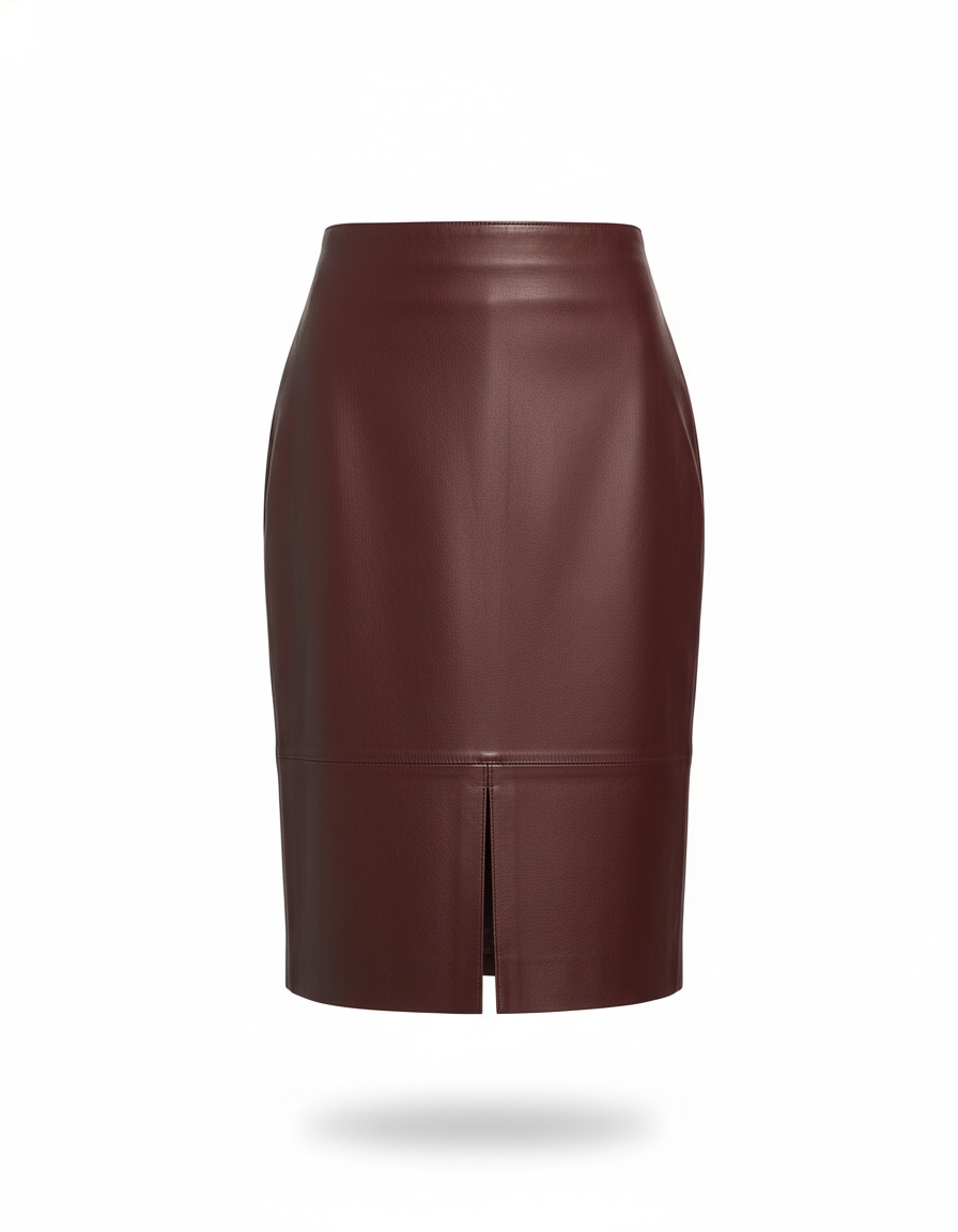 La Jupe Crayon en Cuir Bordeaux : L'Élégance Intemporelle