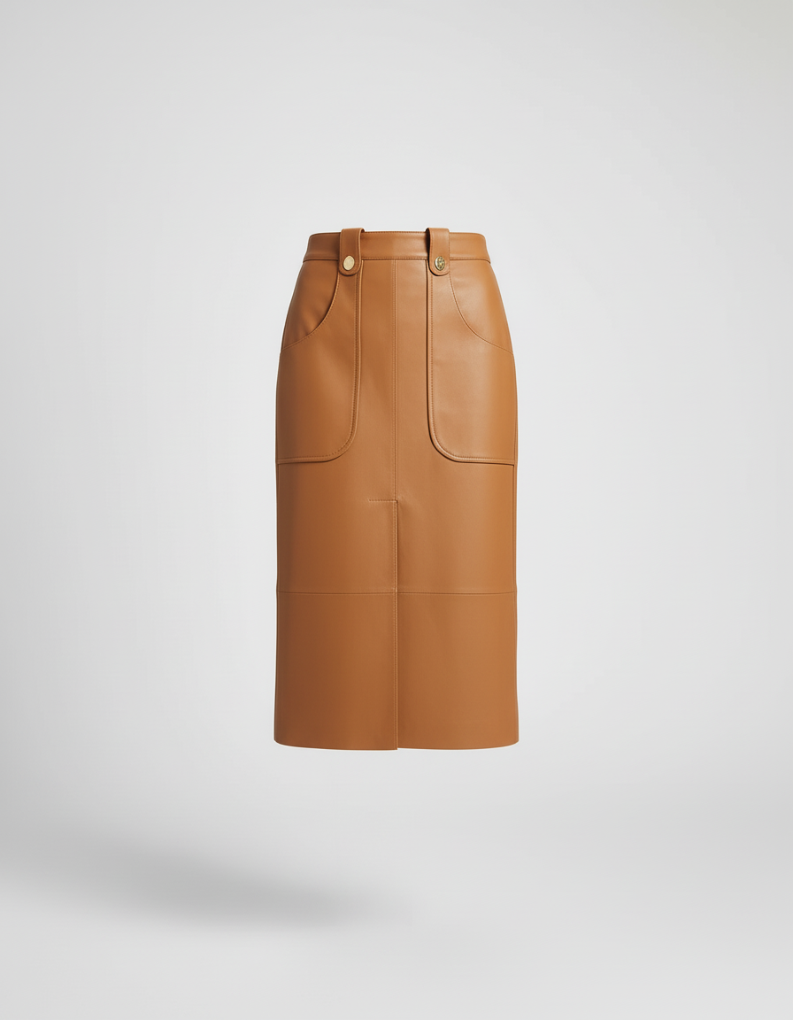Jupe Fendue en Cuir Camel : L'Élégance Moderne au Quotidien