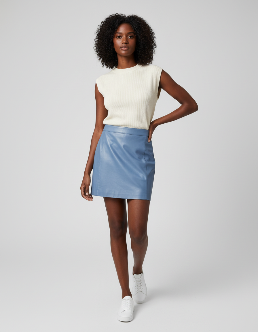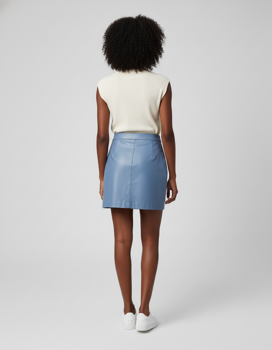 Jupe Portefeuille en Cuir d'Agneau Bleu : L'Élégance Moderne au Quotidien