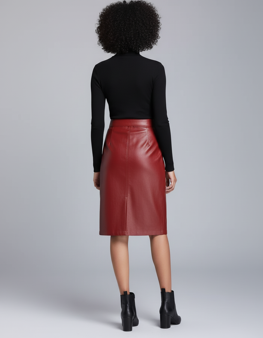 Découvrez notre jupe en cuir rouge, une pièce élégante et polyvalente pour votre garde-robe.