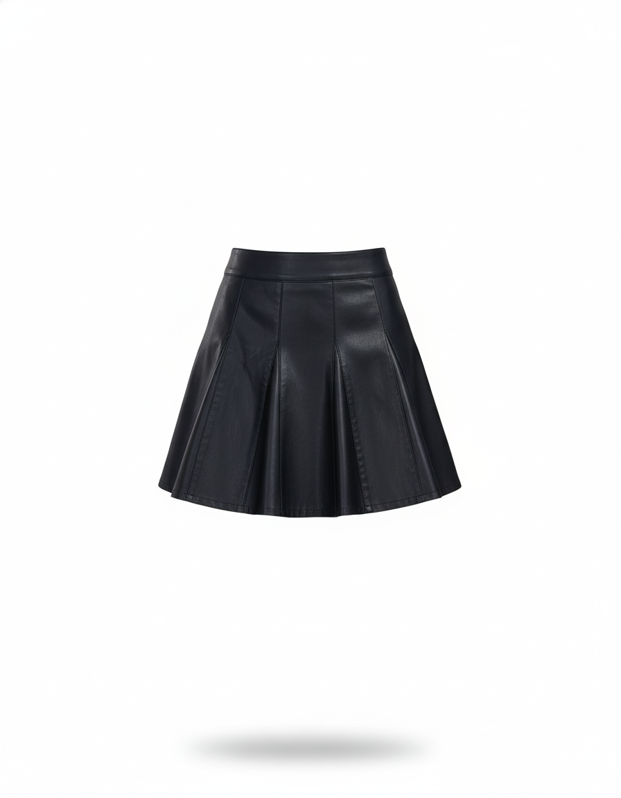 Adoptez un look tendance et audacieux avec notre jupe patineuse en cuir noir, parfaite pour rehausser votre style.