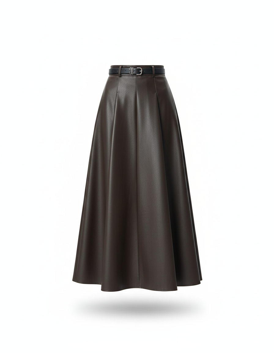 Découvrez l'élégance intemporelle avec notre jupe plissée en cuir marron, parfaite pour un style chic et moderne.