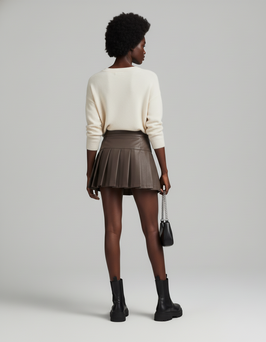 La Jupe Plissée Simili Cuir Marron : L'Essence du Chic Rock Moderne