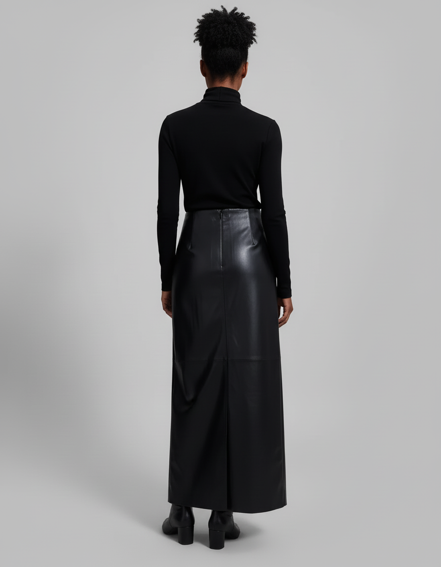 La Jupe Portefeuille Cuir Noir est bien plus qu'une pièce maîtresse pour vos soirées. Son design chic et intemporel vous permet de la réinventer avec audace. Pour une allure sophistiquée en soirée, associez-la à un col roulé noir ajusté et des bottines pointues, comme dans notre look signature, ou optez pour une blouse en soie et des talons aiguilles. En journée, transformez-la avec un simple t-shirt blanc, un blazer structuré et des baskets élégantes pour un look business-chic audacieux, parfait pour un déjeuner ou une rencontre professionnelle. C'est la pièce versatile qui manquait à votre garde-robe.