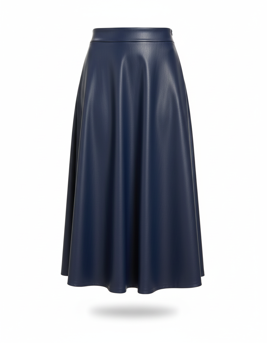 Jupe Évasée Simili Cuir Marine : L'Essence du Chic Contemporain