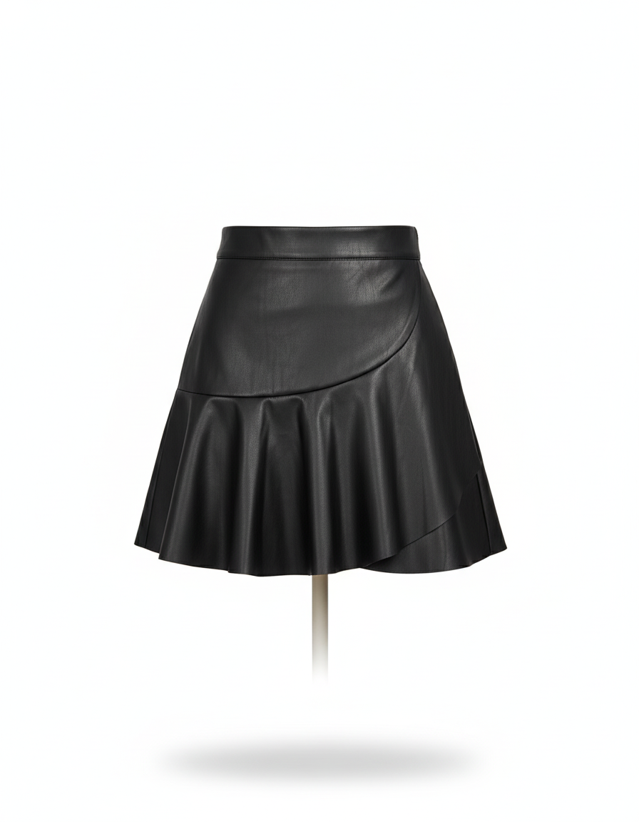 Jupe Simili Cuir Croisé à Volants – Jupe Cuir