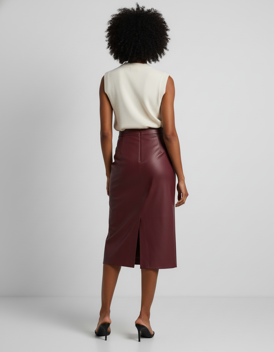 La Jupe Crayon Simili Cuir Bordeaux : L'Affirmation d'une Élégance Moderne