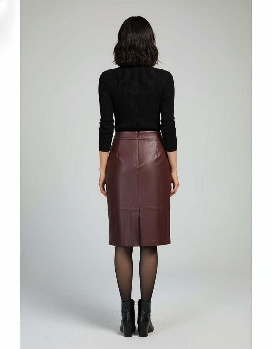 La Jupe Crayon En Cuir Bordeaux : L'Élégance Audacieuse